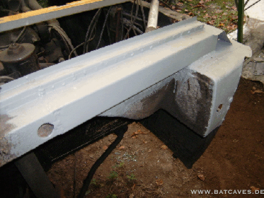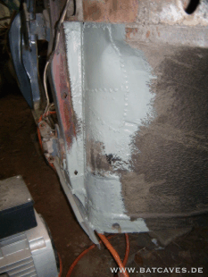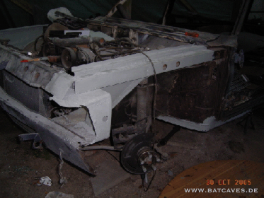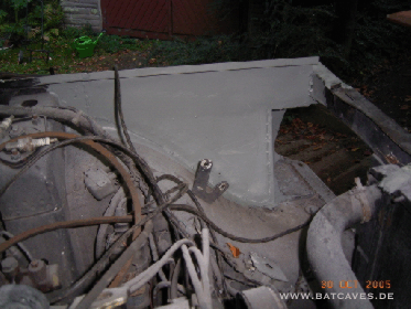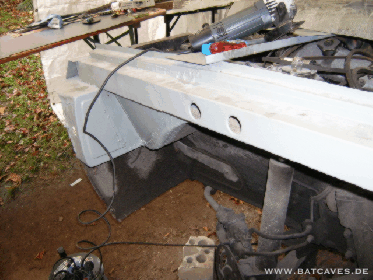 Der Sommer ist zu Ende und die Arbeiten schreiten langsam voran. Kurze Zwischenbilanz: Ein Schlachtauto organisiert, verwertet und Reste verkauft. Der Vorderwagen sieht wieder aus wie er soll. Die grau gestrichenen Teile sind vollständig aus planen Blechtafeln neu entstanden. Hier die linke Seite...