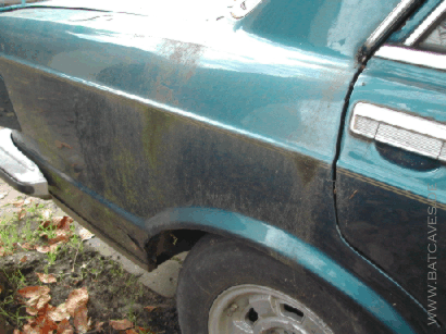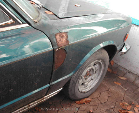 Nach relativ kurzer Suche folgt schnell ein Objekt der Begierde. Billig, fürchterlich vergammelt, aber mit Anhängerkupplung und weitgehend intaktem Windschutzscheibenrahmen. Genau die gesuchte Kombination an Teilen!! Der Preis stimmt, nebenbei sind die originalen Alu-Magnesium-Felgen wie neu. Bilder sagen ja bekanntlich mehr als 1000 Worte: